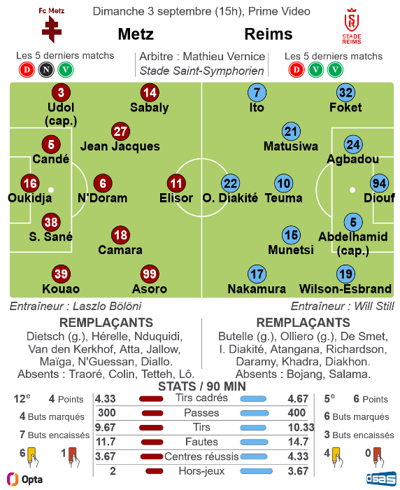 Le Républicain lorrain le met remplaçant mais il devrait avoir du temps de jeu et retrouvera logiquement sa place après la trève.
